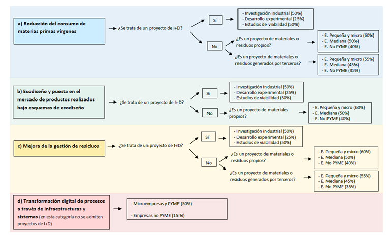 Serán subvencionables las actuaciones que contribuyan de forma sustancial a la transición hacia una economía circular en una de las siguientes categorías: