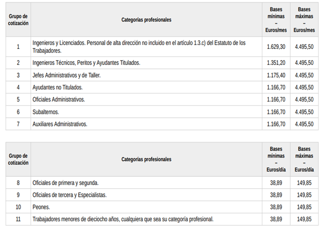 - ¿Cuáles son las bases de cotización a la Seguridad Social durante 2023?