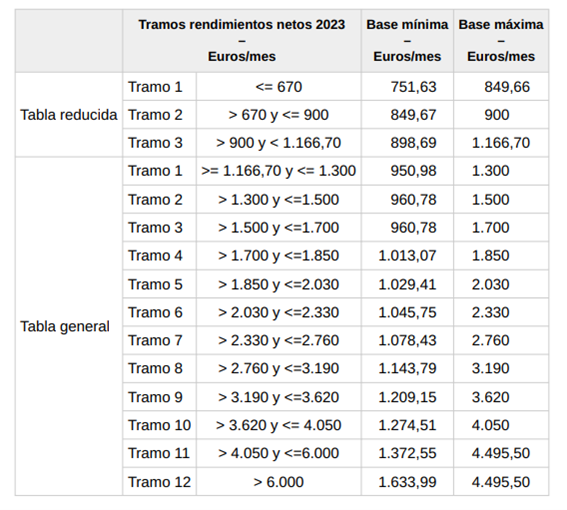 - ¿Cuáles son las bases para los autónomos durante 2023?