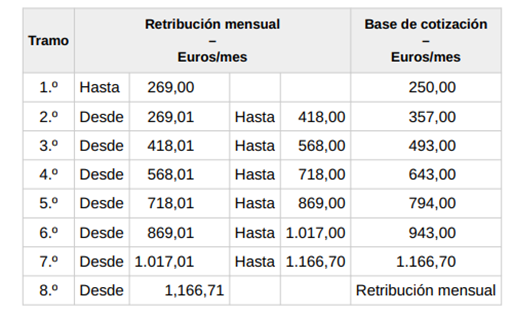 Los tipos de cotización para las empleadas de hogar durante 2023 son los siguientes: