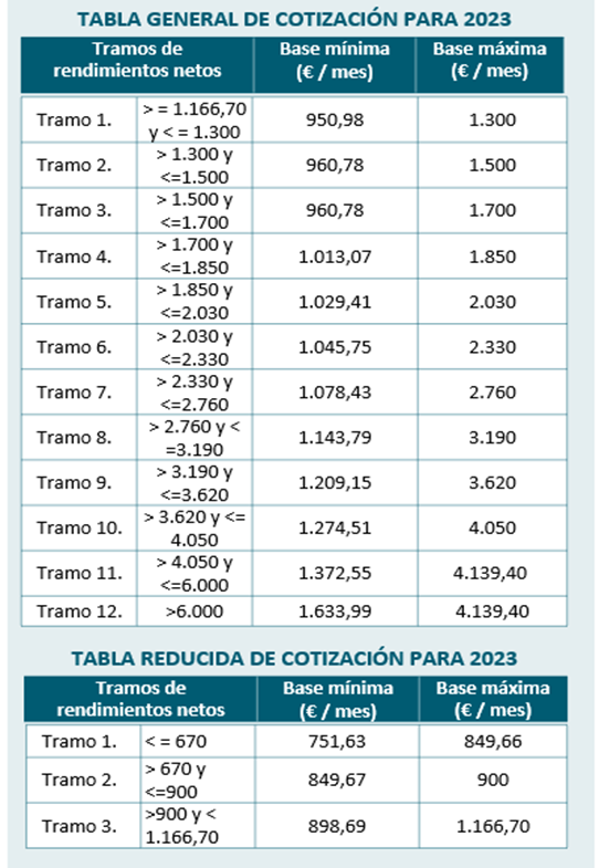 Hay una cuota mínima de 230€ al mes en 2023, 64€ menos que la mínima actual de 294€.