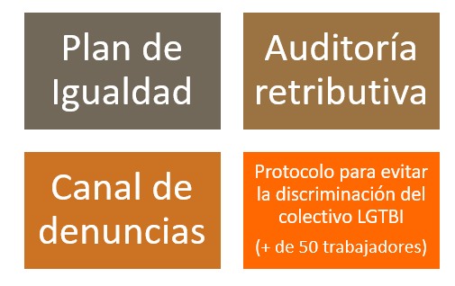 Las empresas de más de 50 trabajadores deberán contar con un conjunto planificado de medidas y recursos para alcanzar la igualdad real y efectiva de las personas LGTBI. Dentro de estas medidas se recogerá un protocolo de actuación para la atención del acoso o la violencia contra las personas que formen parte de este colectivo. Para ello, las medidas serán pactadas a través de la negociación colectiva y acordadas con la representación legal de las personas trabajadoras.