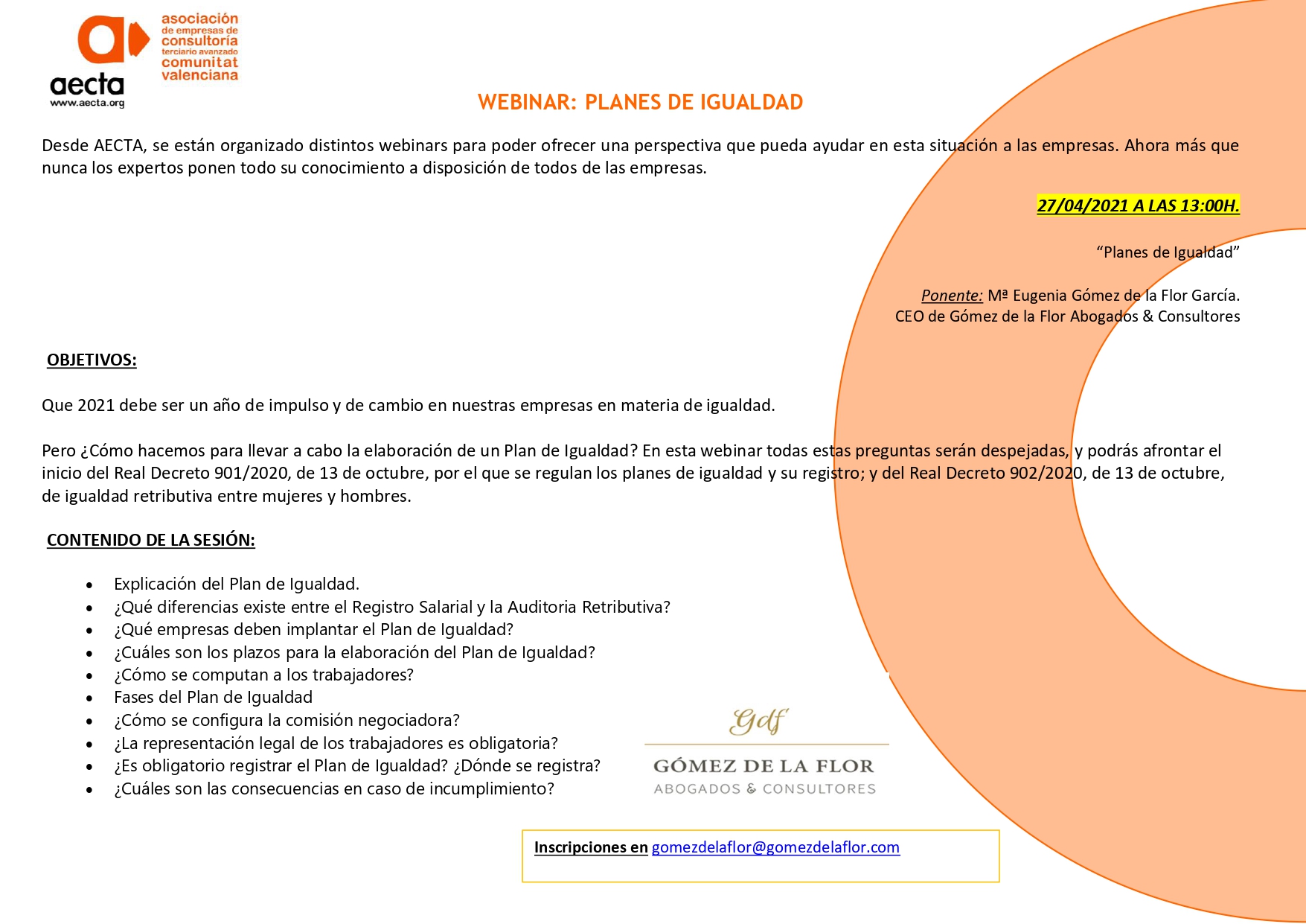 Si desea inscribirse deberá enviar un email a gomezdelaflor@gomezdelaflor.com con sus datos (nombre y correo) para poder enviarle el enlace de la webinar.